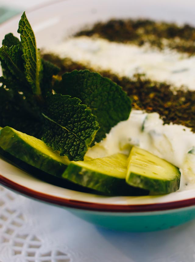 Finely Cut Cucumber And Dried Mint With Yogurt