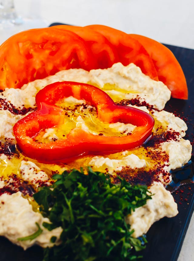 Crema De Berenjenas Ahumadas Con Yogurt, Sésamo, Especias Libanesas